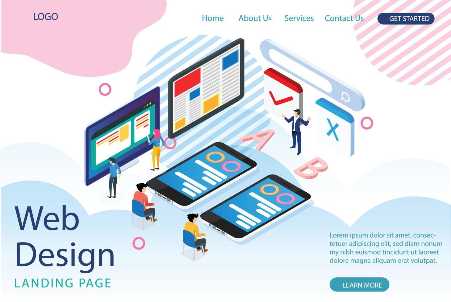 Modern Isometric Business analysis concept banner with characters. Can use for web banner, infographics, hero images. Flat isometric vector illustration isolated on white background. Pro Vector