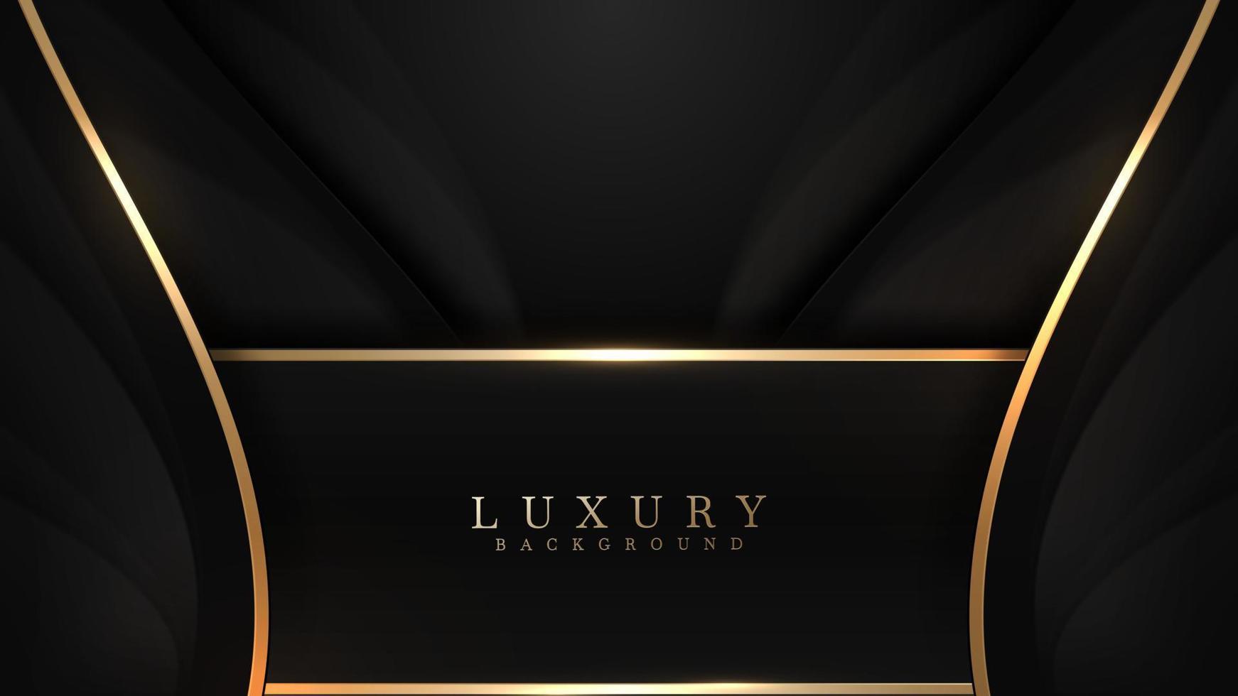 Elegant style black background with golden frame and curved lines with glowing light effect decoration. Pro Vector
