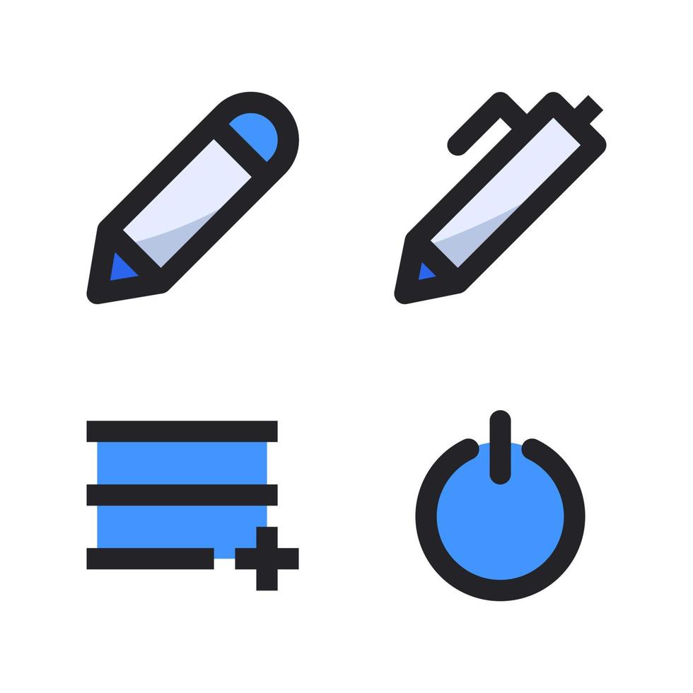 User Interface icon set. Pencil, pen, add menu, power. Perfect for website mobile app, app icons, presentation, illustration and any other projects vector