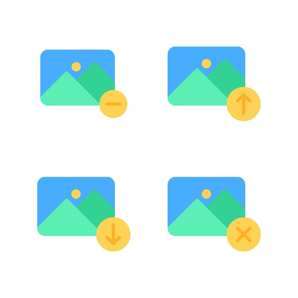 Photography icons set. Image delete, upload image, download image, cancel. Perfect for website mobile app, app icons, presentation, illustration and any other projects vector