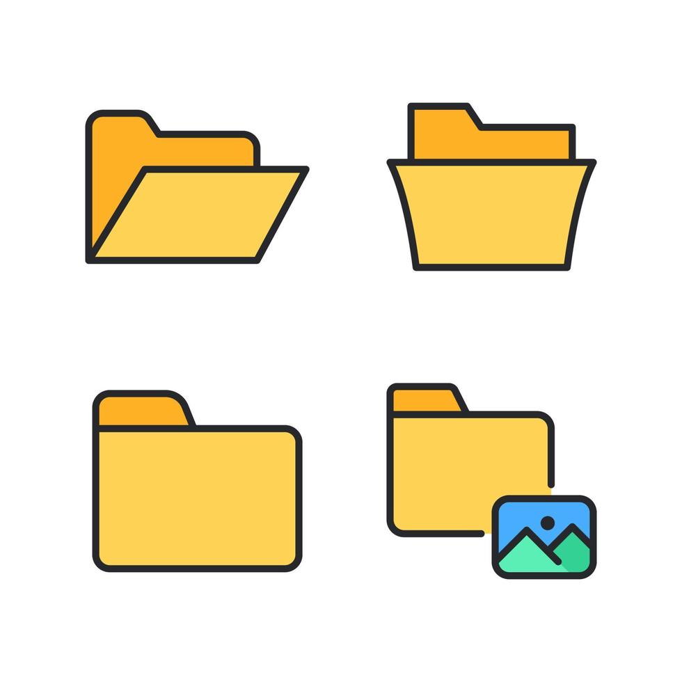 Photography icons set. Open folder, document, folder, folder images. Perfect for website mobile app, app icons, presentation, illustration and any other projects vector