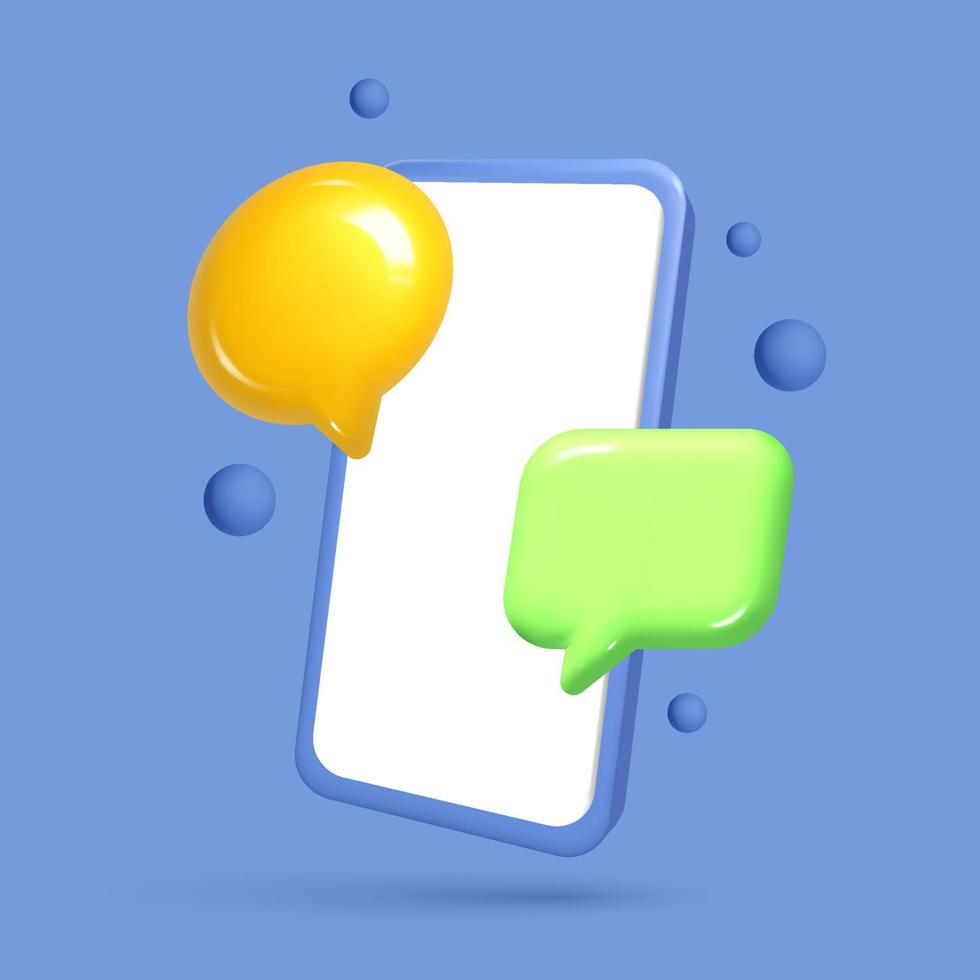 3d realistic mesh smartphone vector icon with chat bubble social media. Mobile with text frame. Incoming mail notify, newsletter and online email concept illustration phone message dialogue Pro Vector