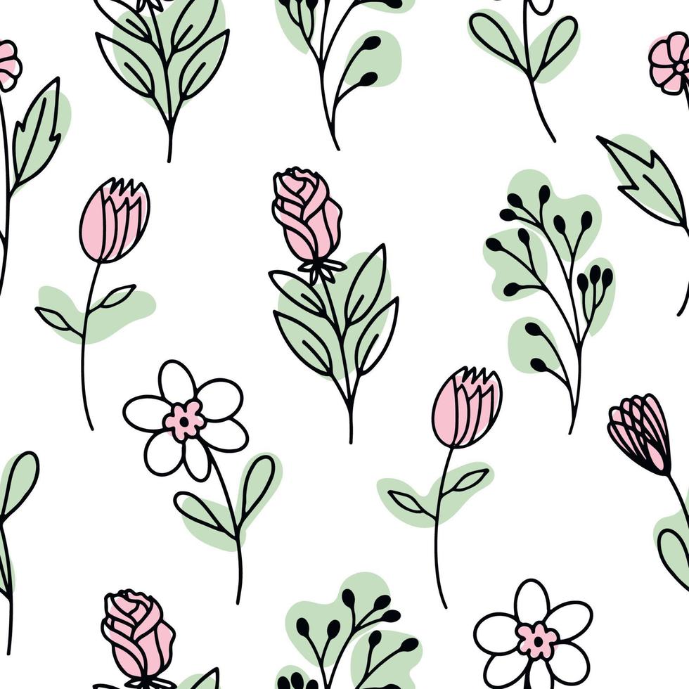 Seamless pattern with the image of spring flowers highlighted on a white background. Vector illustration Pro Vector