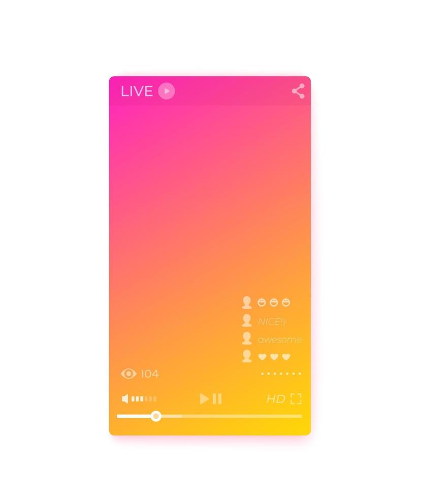 LIVE streaming video player interface, mobile app ui.eps Pro Vector