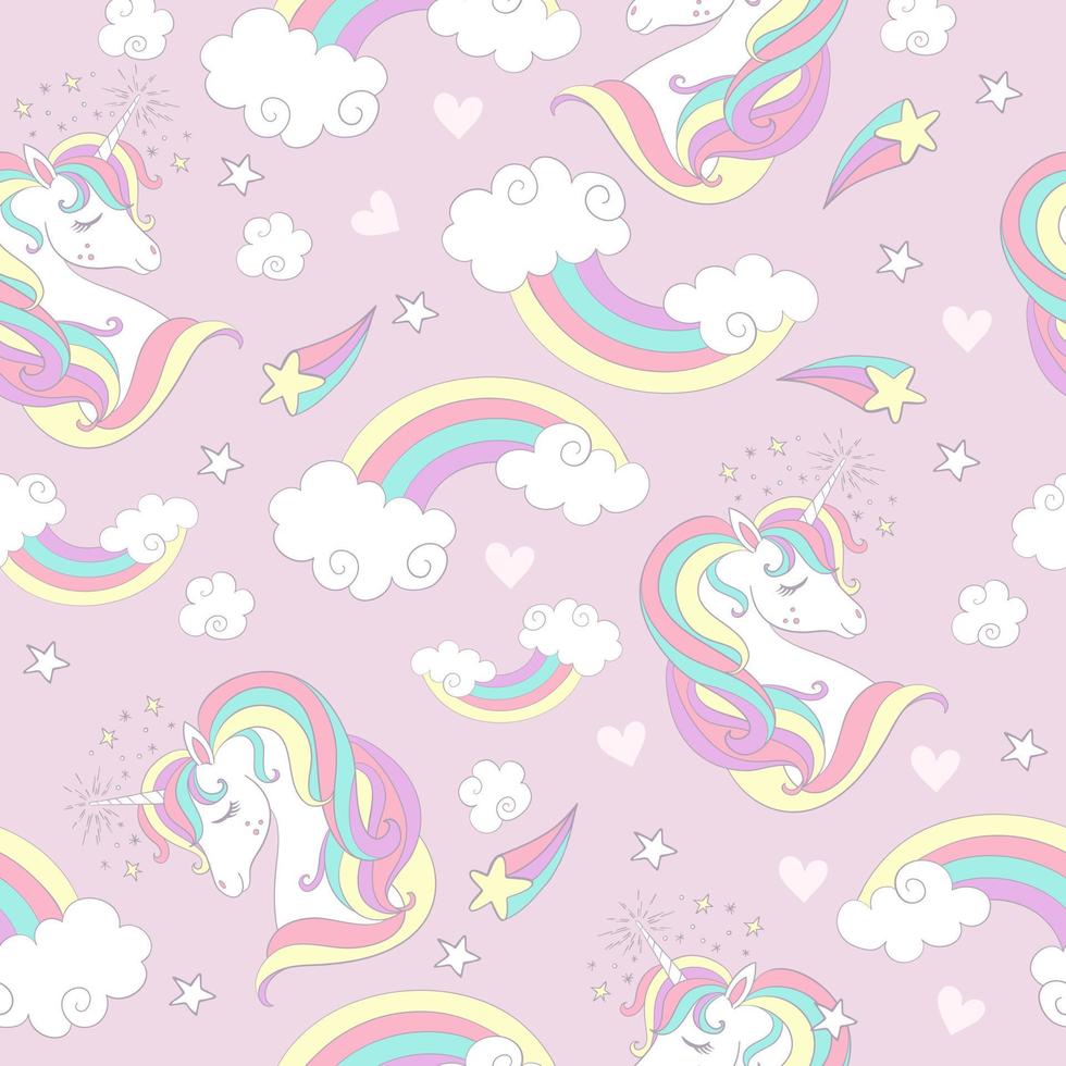 Seamless pattern with unicorns and magic elements vector Pro Vector