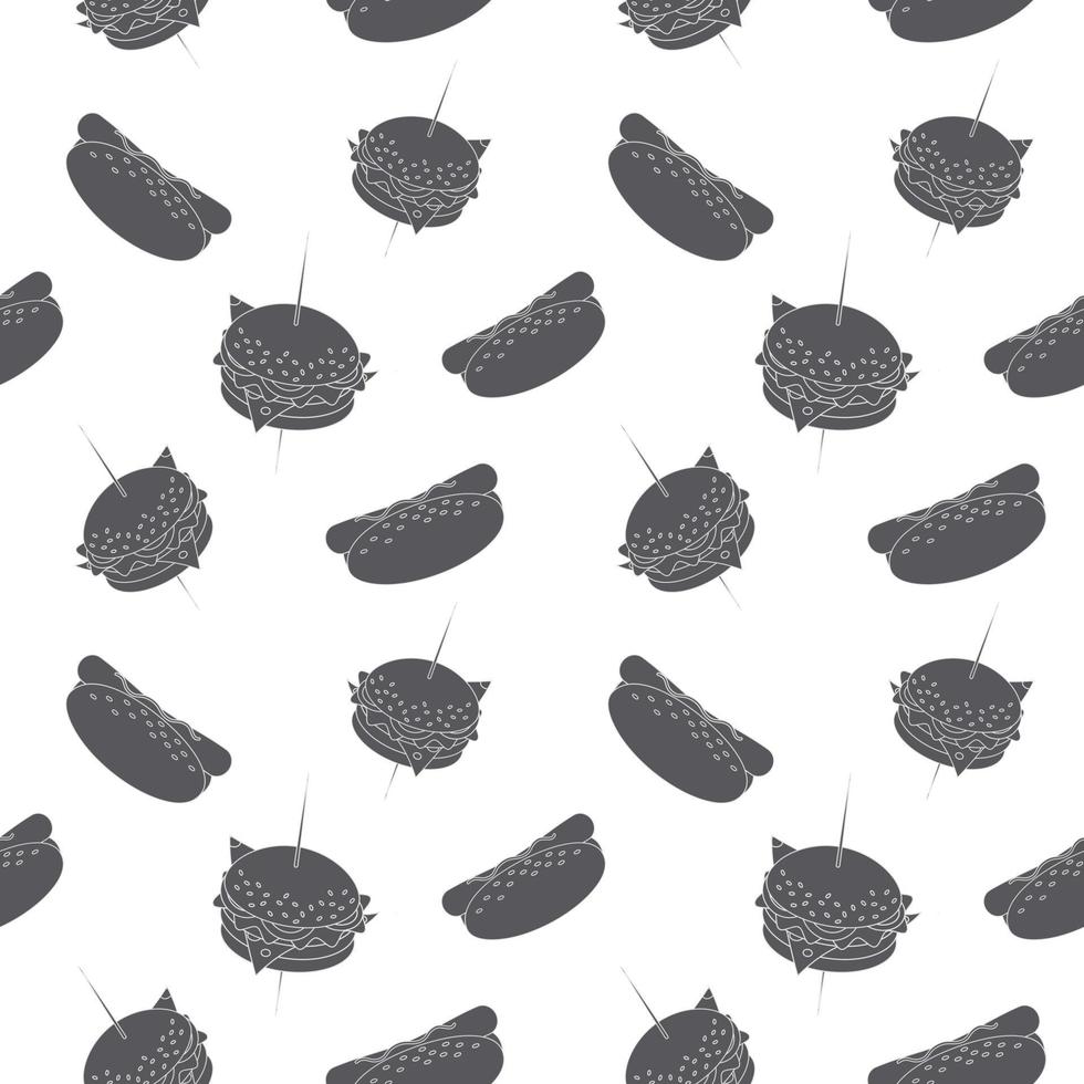 Seamless pattern of Grayscale image of a hamburger on a skewer and a hot dog. Fast Food. Happy hamburger day Pro Vector