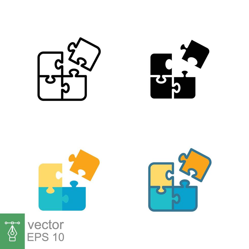 Puzzle jigsaw icon in different style. Line, solid, flat, filled outline. Join teamwork, challenge, combination, problem solving, solution. Vector illustration isolated on white background. EPS 10. Pro Vector