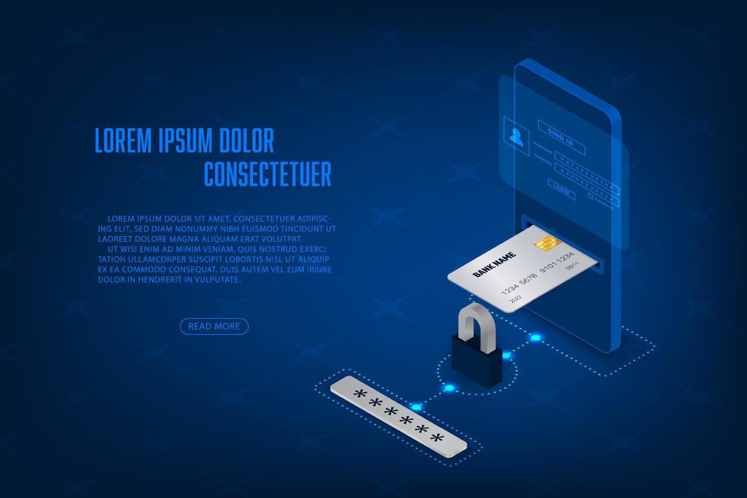 Vector isometric mobile security with password concept Technology abstract background. Pro Vector