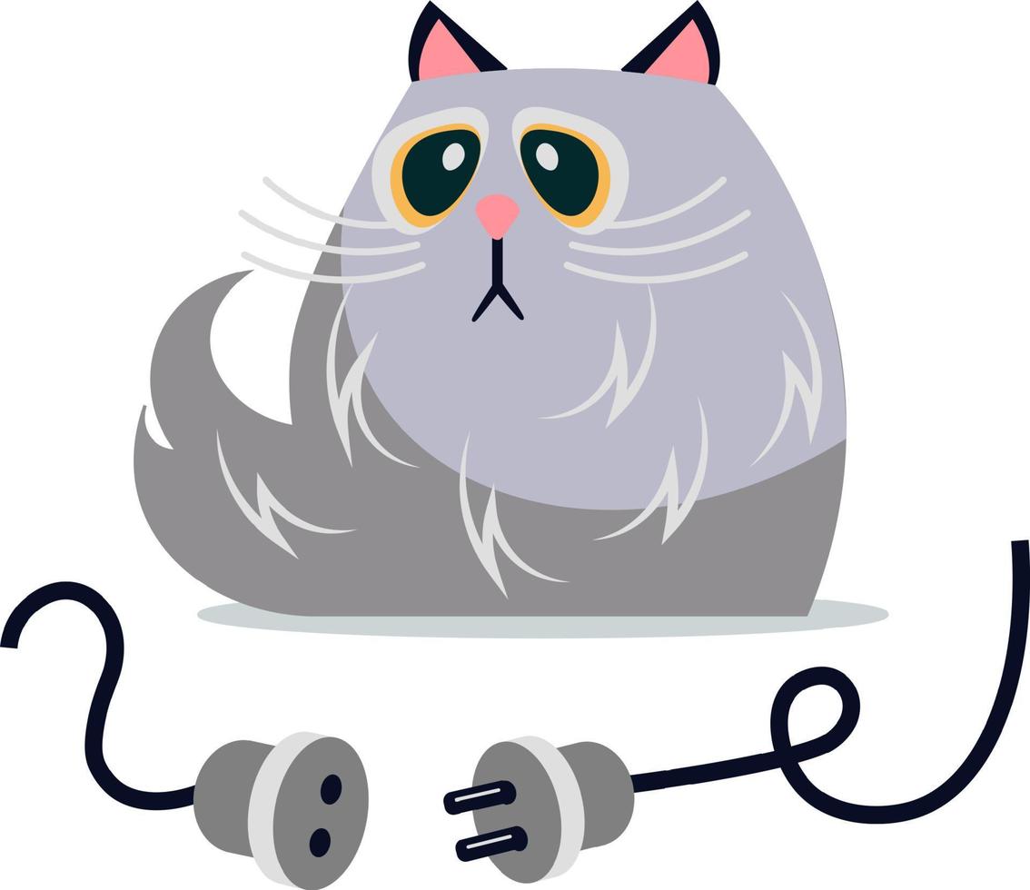 Vector drawing. Sad gray cat. The site is not available. Website loading error