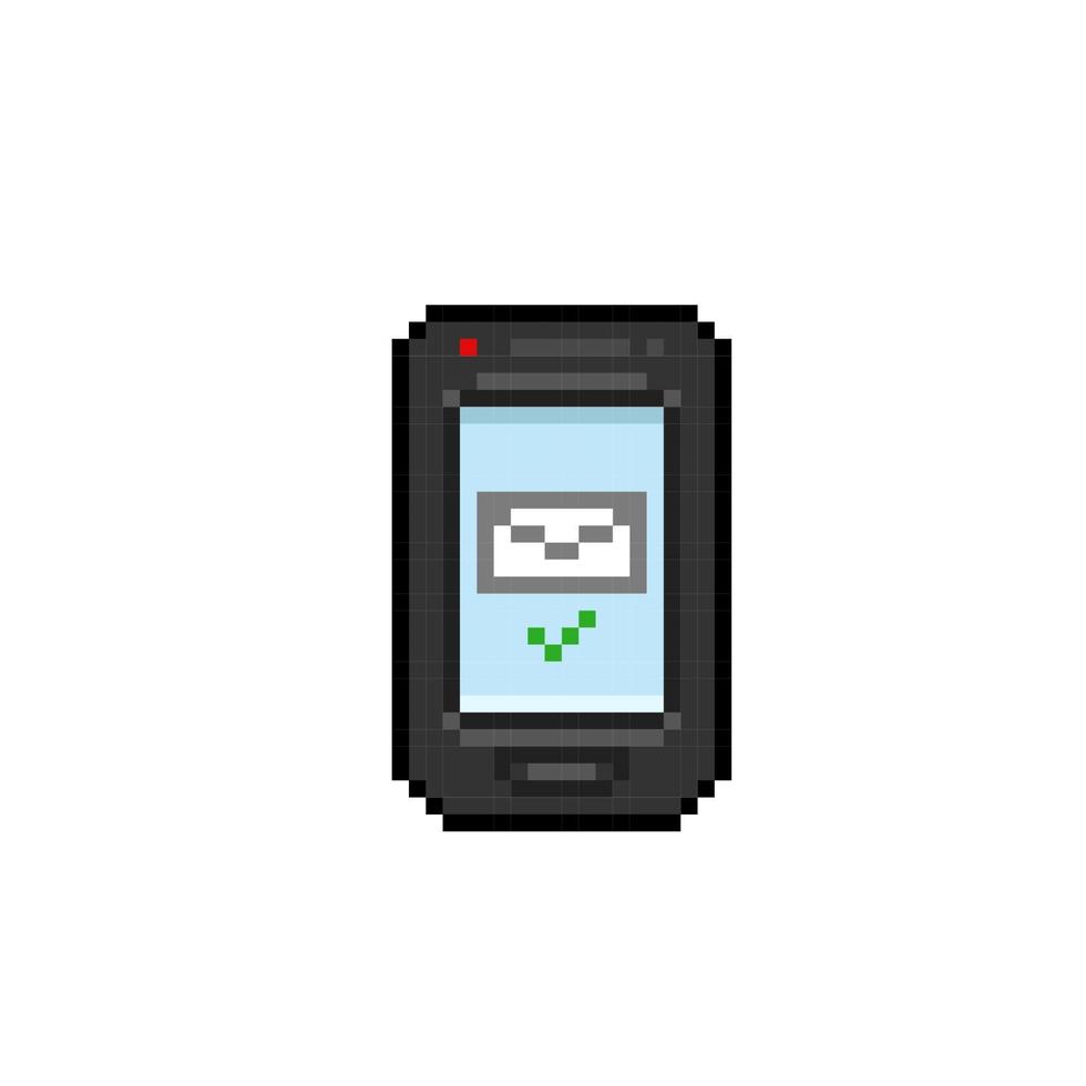 black mobile phone with sending message in pixel art style Pro Vector