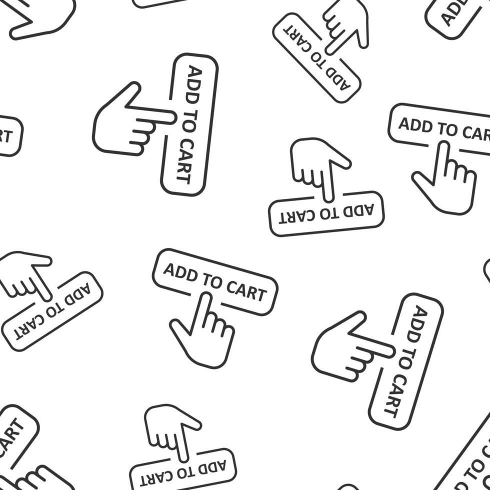 Add to cart shop icon seamless pattern background. Finger cursor vector illustration on white isolated background. Click button business concept. Pro Vector
