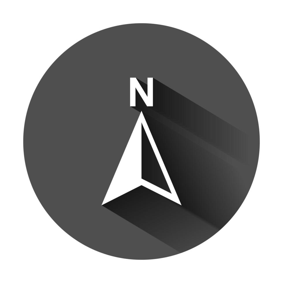 Global navigation icon in flat style. Compass gps vector illustration on black round background with long shadow. Location discovery business concept. Pro Vector
