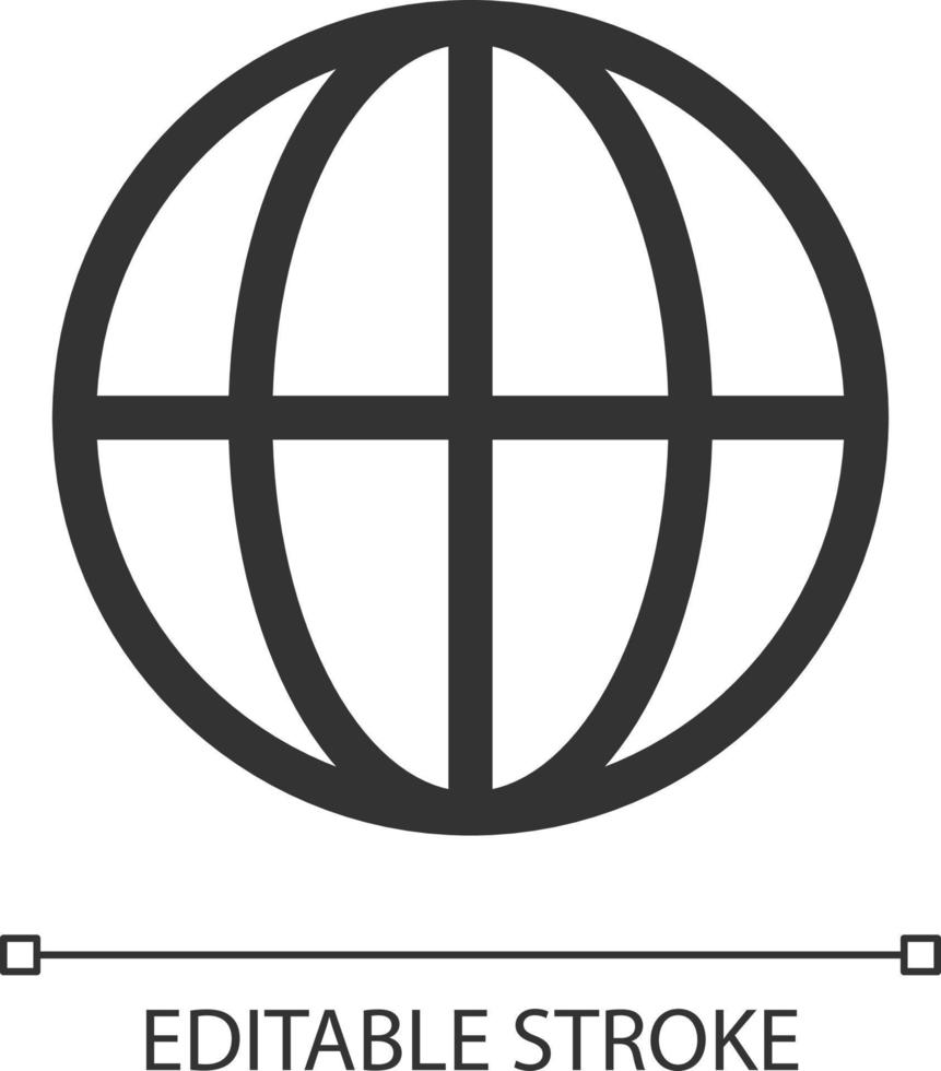 Globe pixel perfect linear ui icon. International services. Worldwide shipment. GUI, UX design. Outline isolated user interface element for app and web. Editable stroke Pro Vector