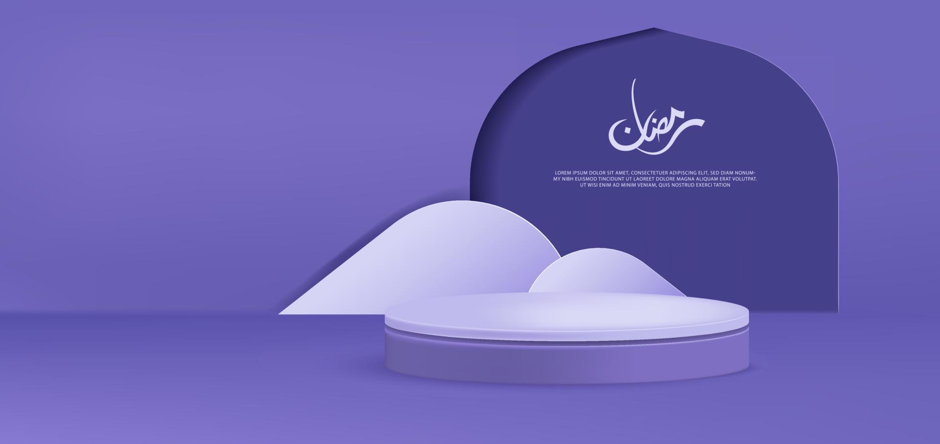 Ramadan theme product display background in 3d minimal purple design. Mosque portal frame with podium and blank space. Pro Vector