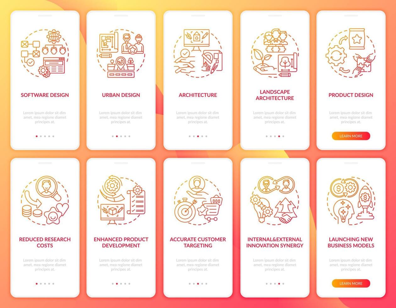 Collaborative product development onboarding mobile app page screen with concepts set Pro Vector