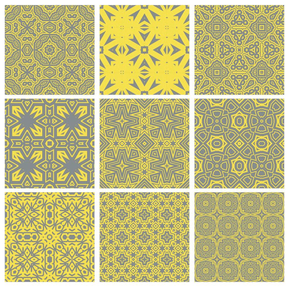 Set of abstract fantasy thin line hexagon, triangle geometric seamless patterns. Creative mosaic, tile background collection. Pro Vector