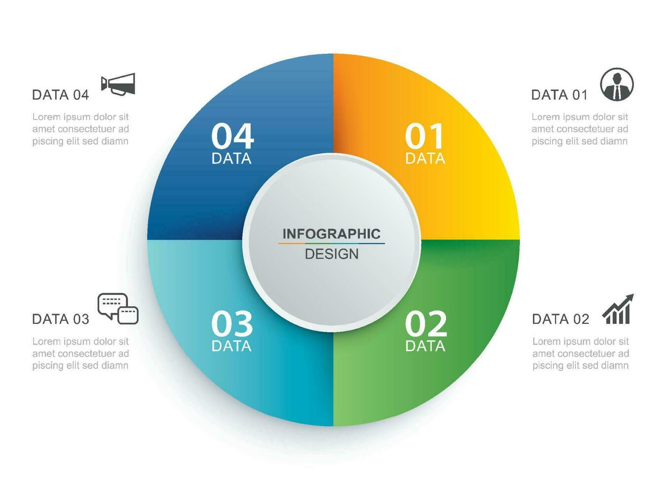 Infographics circle timeline with 4 number data template. Vector illustration abstract background. Pro Vector
