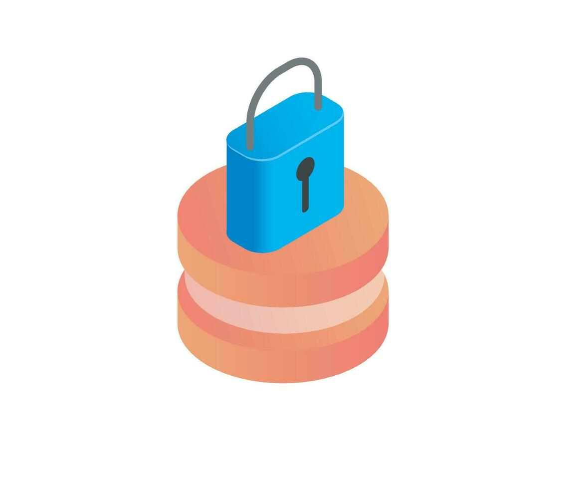 Isometric style icon of server security with padlock isolated on white background Pro Vector and Pro SVG