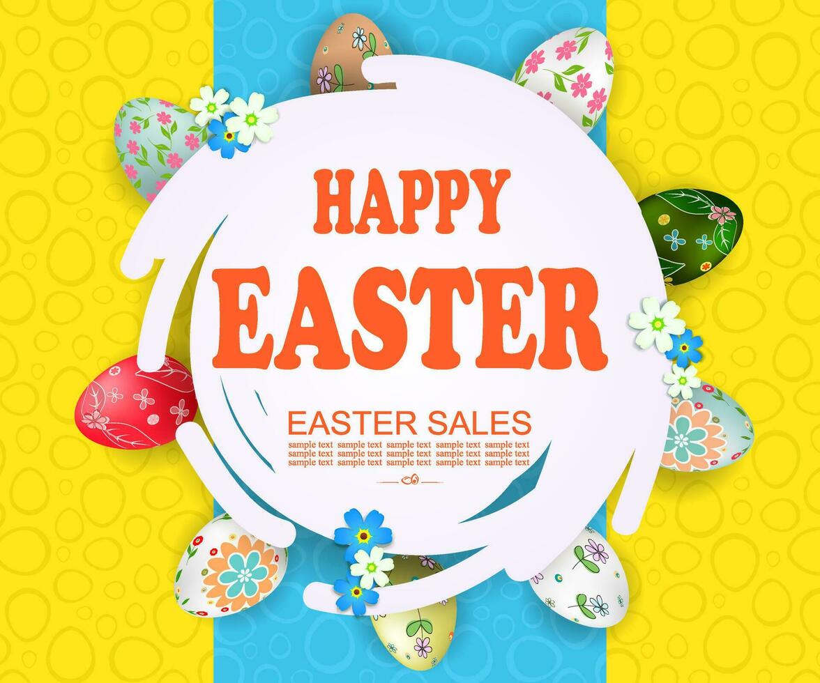Abstract round frame, Easter eggs with a pattern, composition in blue and yellow shades. Pro Vector
