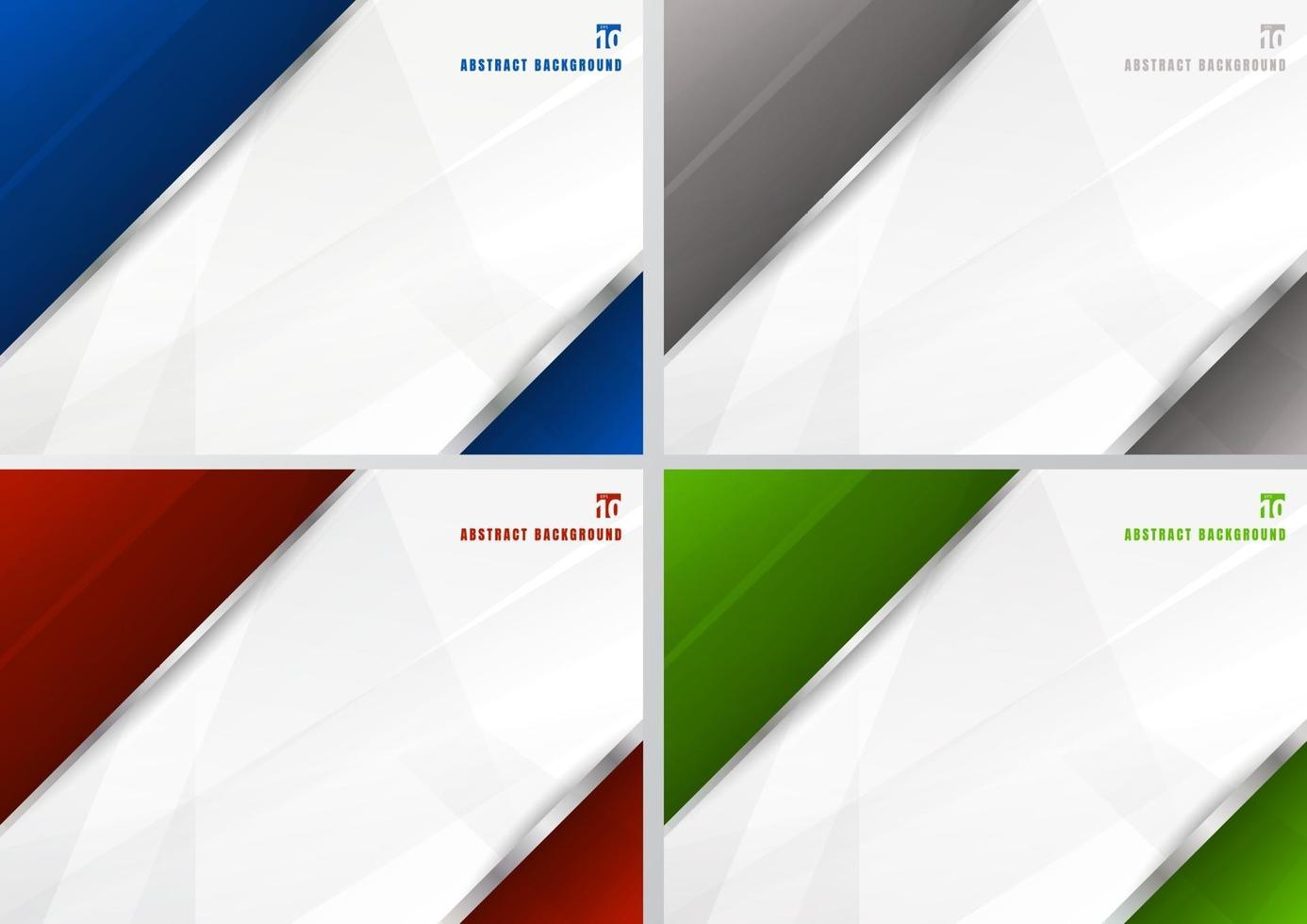 Set of abstract template blue, gray, red and green with white diagonal overlapping layers background with with silver line decoration. technology futuristic concept. Pro Vector