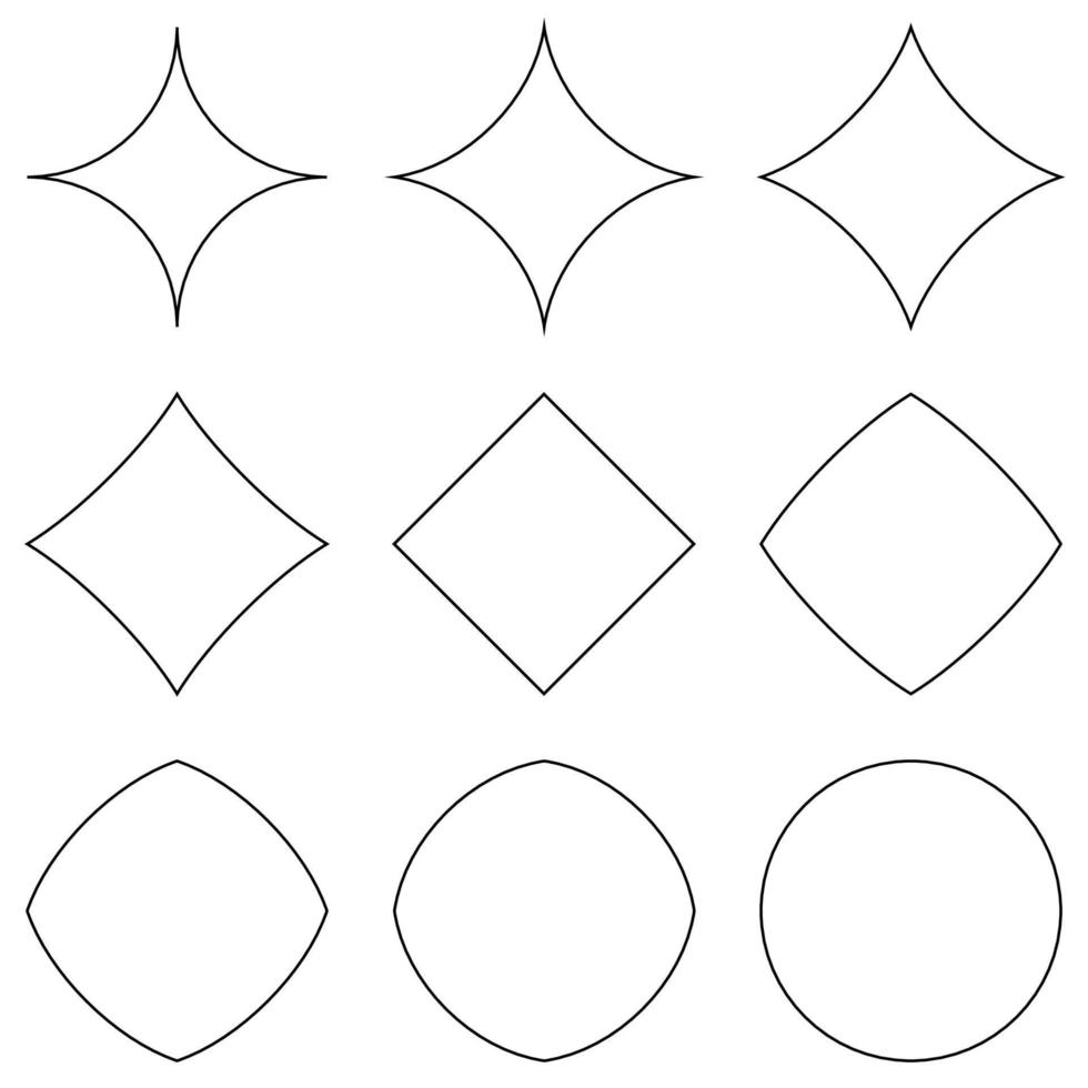 set geometric shapes, transition from star to circle and square, vector geometric shapes for design, different convexities and concavities Pro Vector