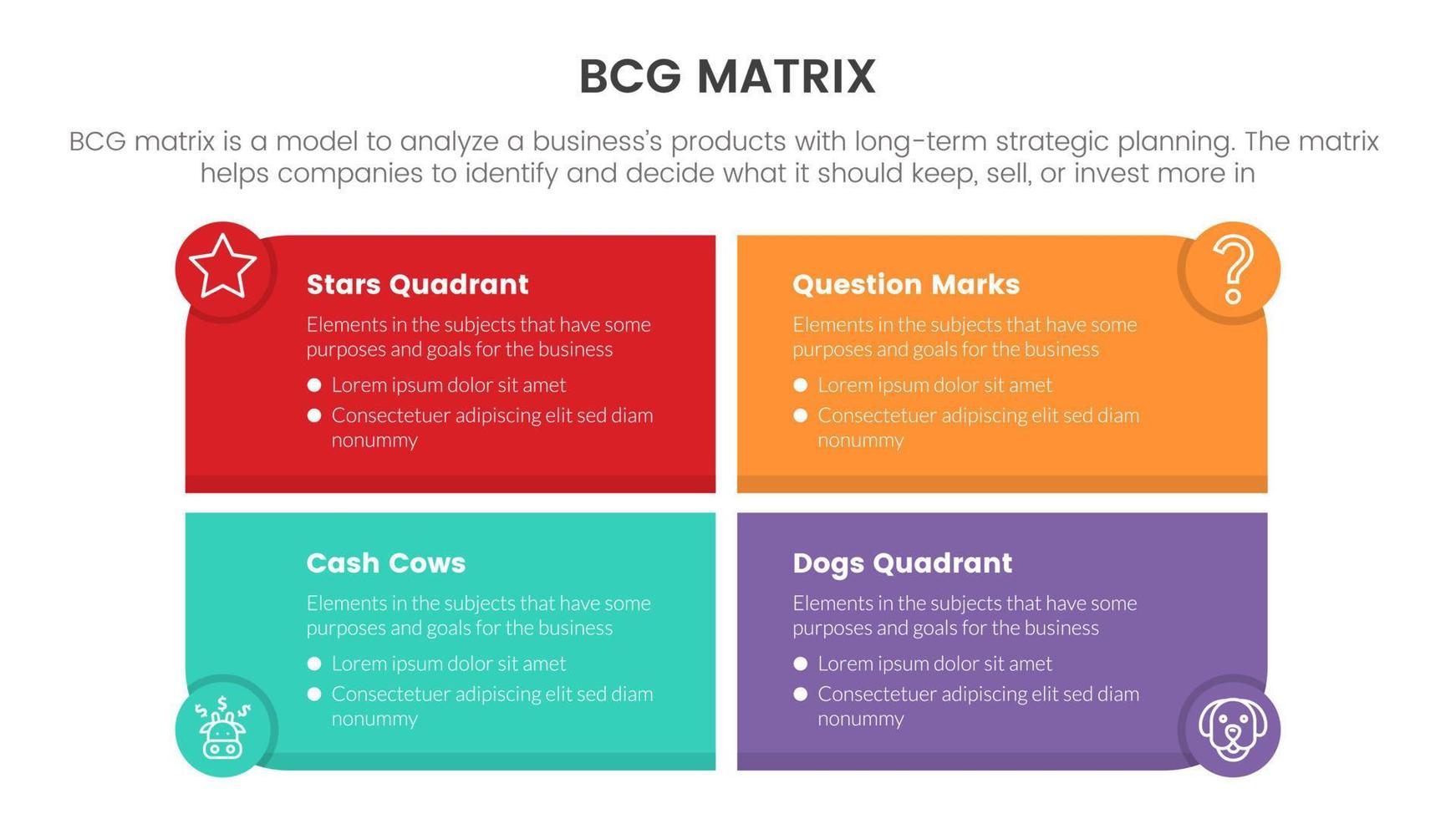 bcg growth share matrix infographic data template with big box symmetric shape concept for slide presentation vector