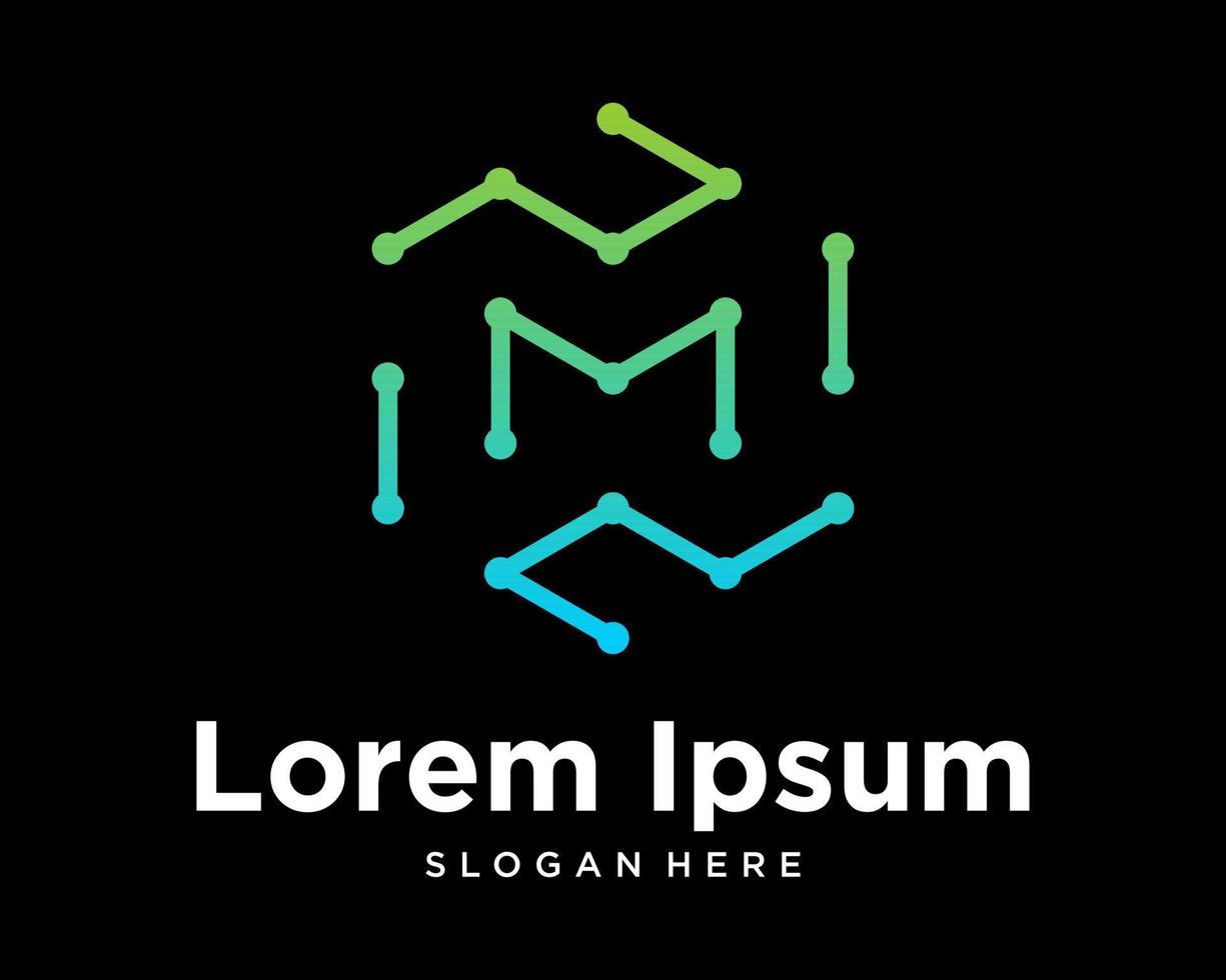 Set Letter M PM Monogram Connection Networking Internet Technology Style Modern Icon Design Template Pro Vector