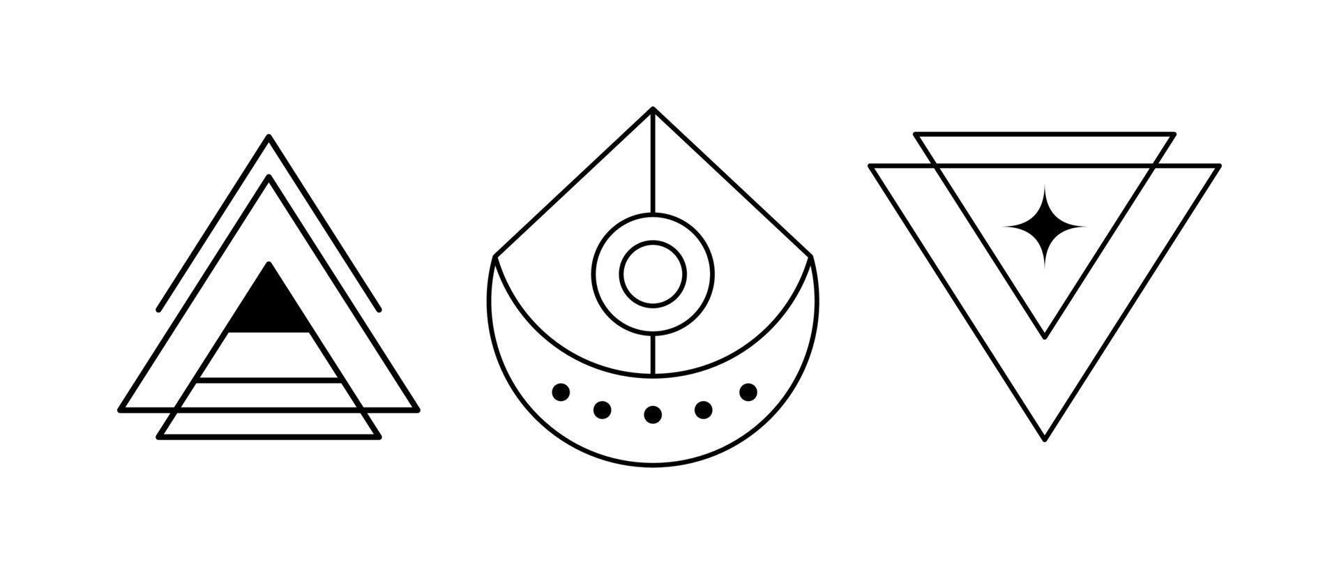 Vector linear esoteric amulets collection. Isolated Crescend and triangle shapes on white background Pro Vector