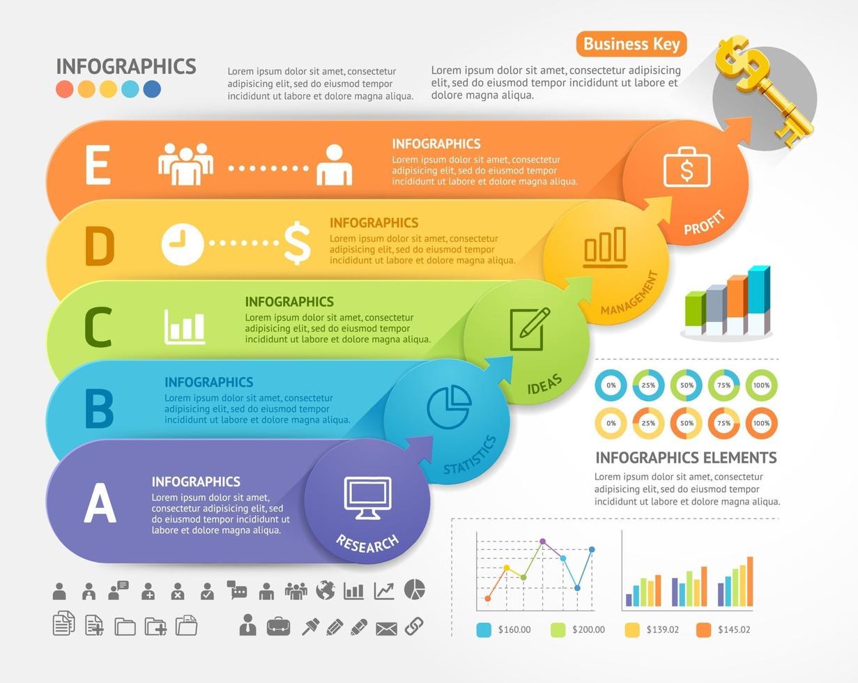 Business Infographics design template. Vector illustration. Can be used for workflow layout, diagram, number options, start-up options, web designs. Pro Vector