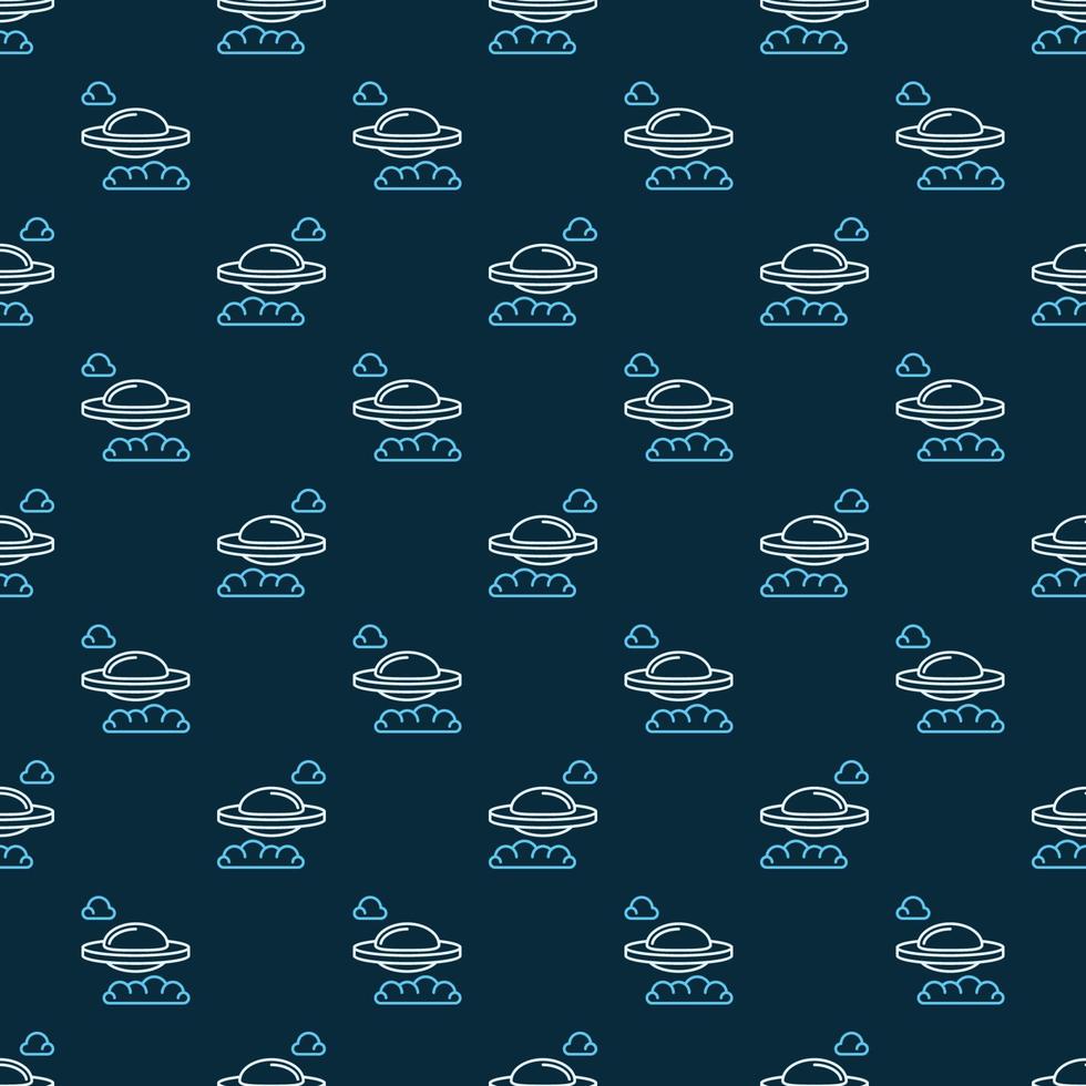 Flying Saucer in Clouds vector concept linear seamless pattern Pro Vector