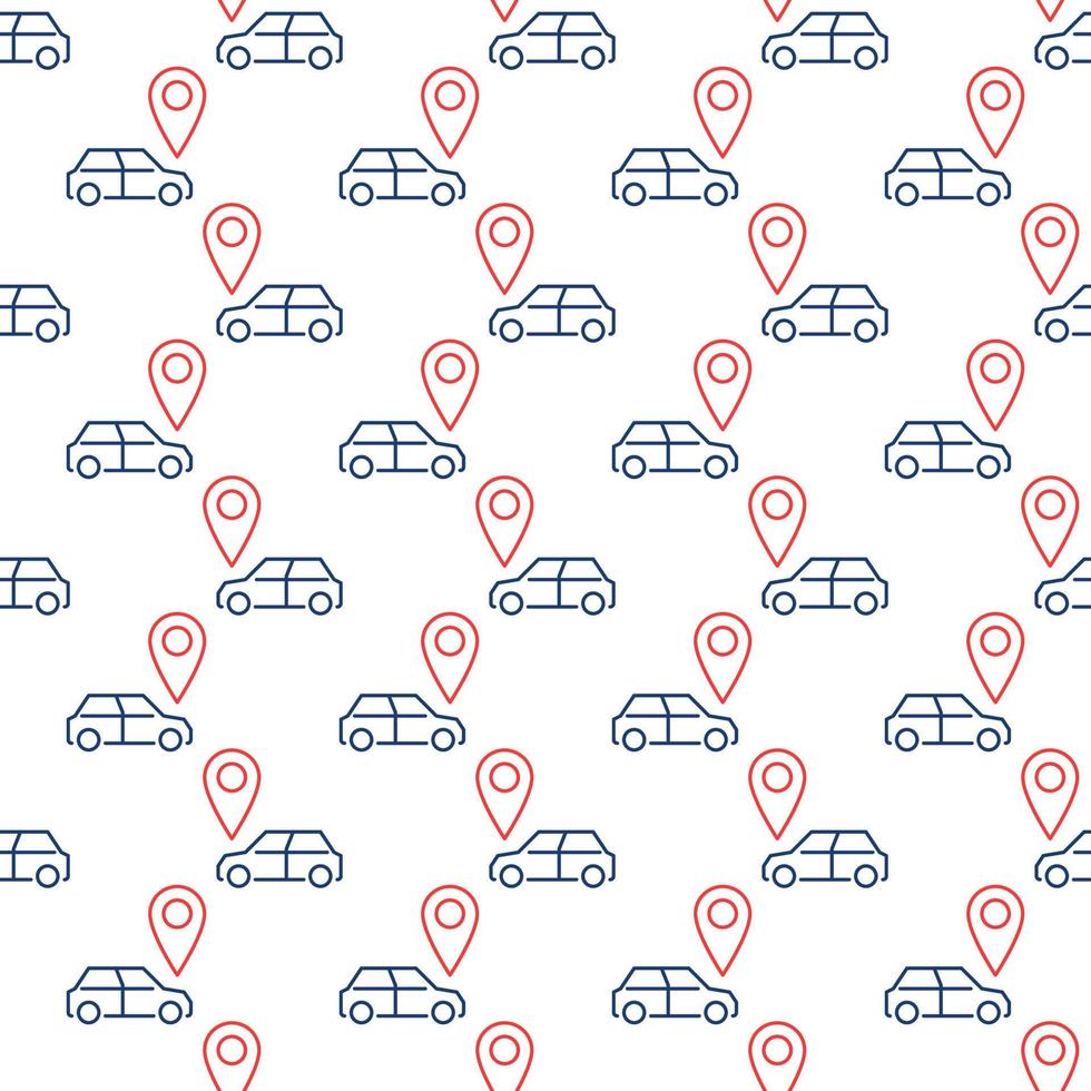 Car and Red Map pointer vector Location line seamless pattern Pro Vector