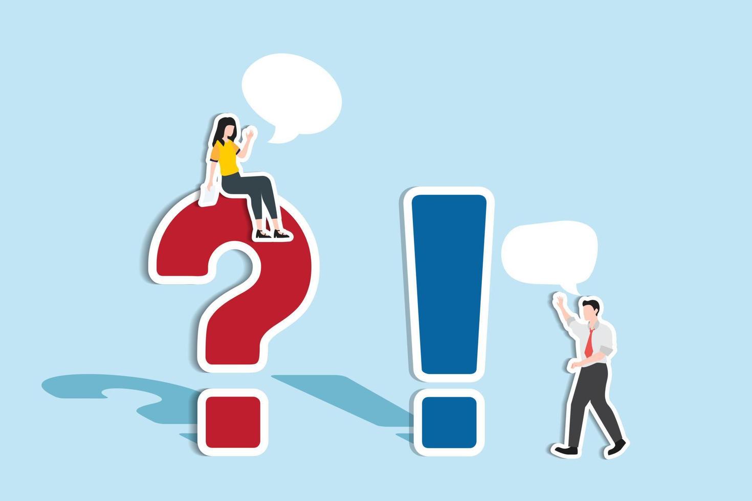 Q and A, FAQ, frequently asked questions, discussion to get solution to solve problem, brainstorm conversation or quiz concept, businessman and woman ask and answer questions. Paper Cut Style Pro Vector