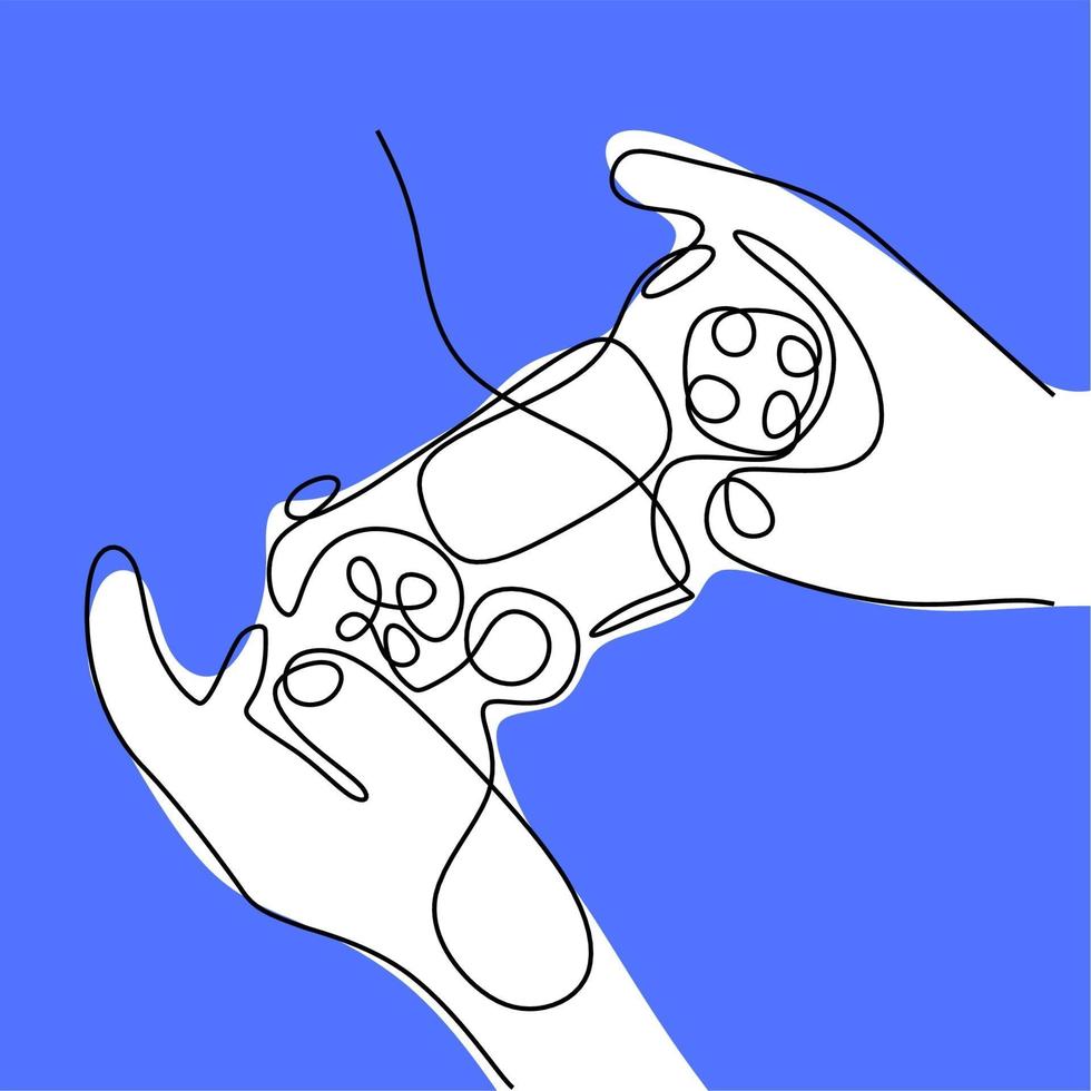 A hand holding game stick one line drawing vector illustration. A joystick to play the game minimalism hand-draw isolated on white background. Wireless game controller for PC concept. Pro Vector