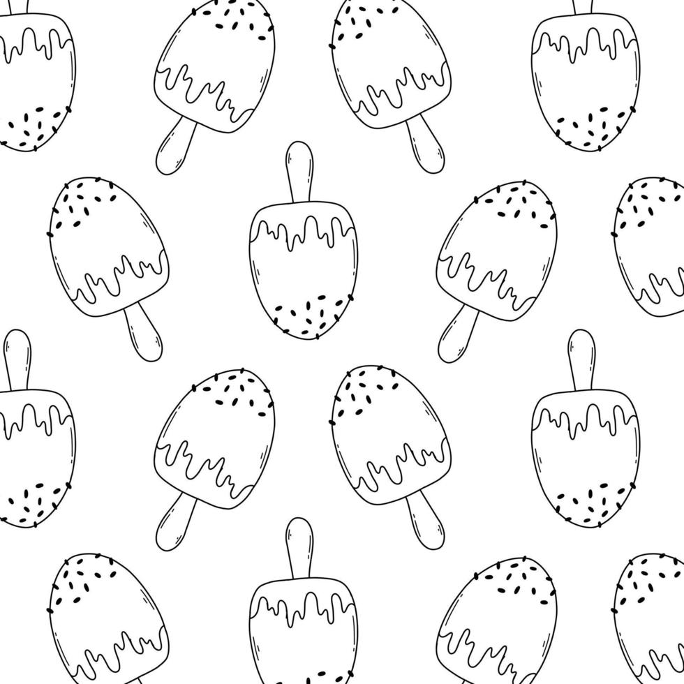 Seamless pattern with ice cream in doodle style. Vector illustration. Linear print with ice cream. Pro Vector