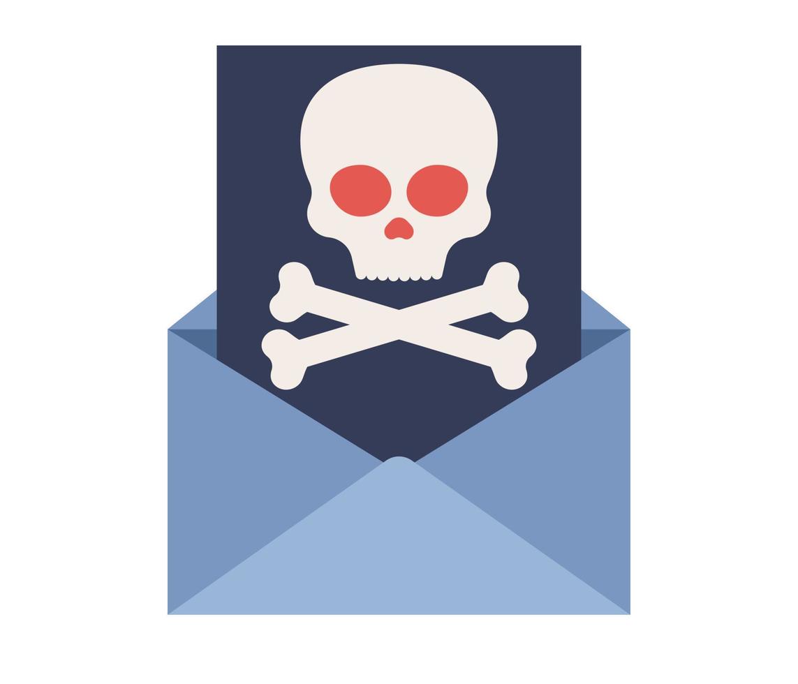 Computer viruses spread out from email icon. Cyber security. Emergency alert of threat. Antivirus, malware, virus, trojan, hacker concept. Vector flat illustration Pro Vector