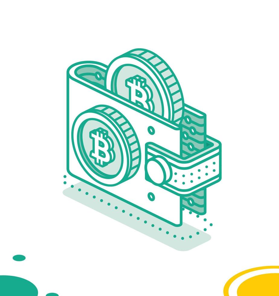 Isometric Crypto Wallet with Cryptocurrency . Two Bitcoin. Outline Icon for Cryptocurrency Storage App. Blockchain Technology. Pro Vector