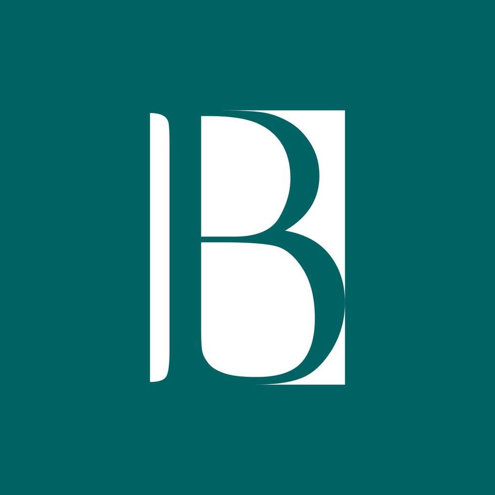 Unique letter or word B serif font on negative space or square block image graphic icon logo design abstract concept vector stock. Can be used as a symbol related to initial or monogram Pro Vector