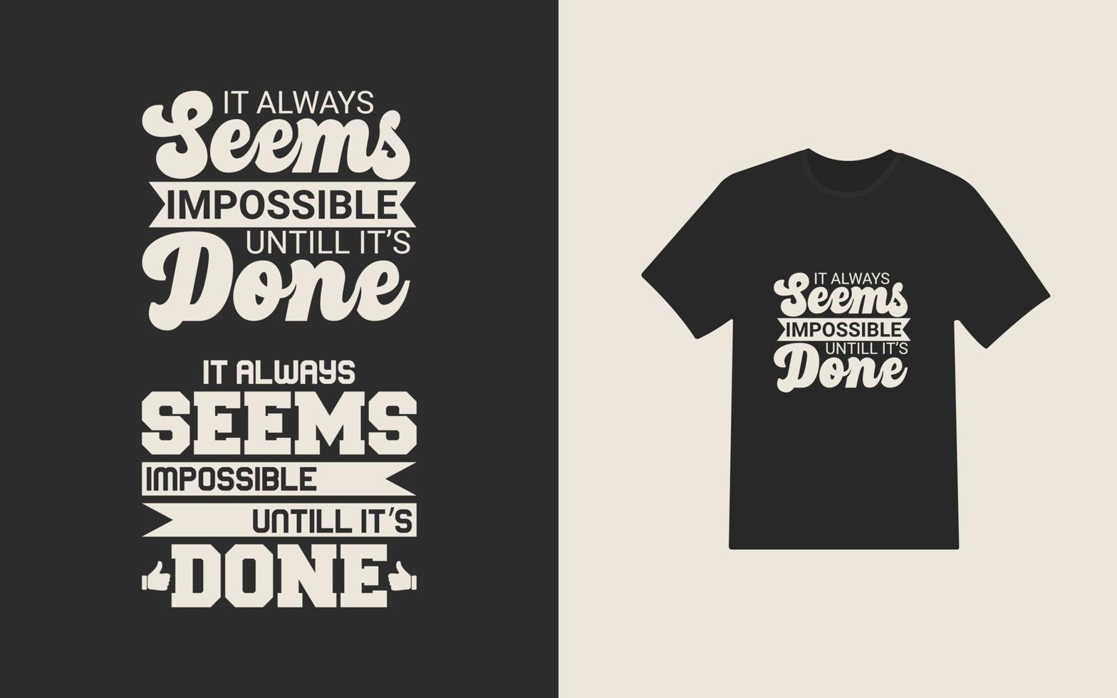 T-Shirt design with it always seems impossible until its done text Pro Vector