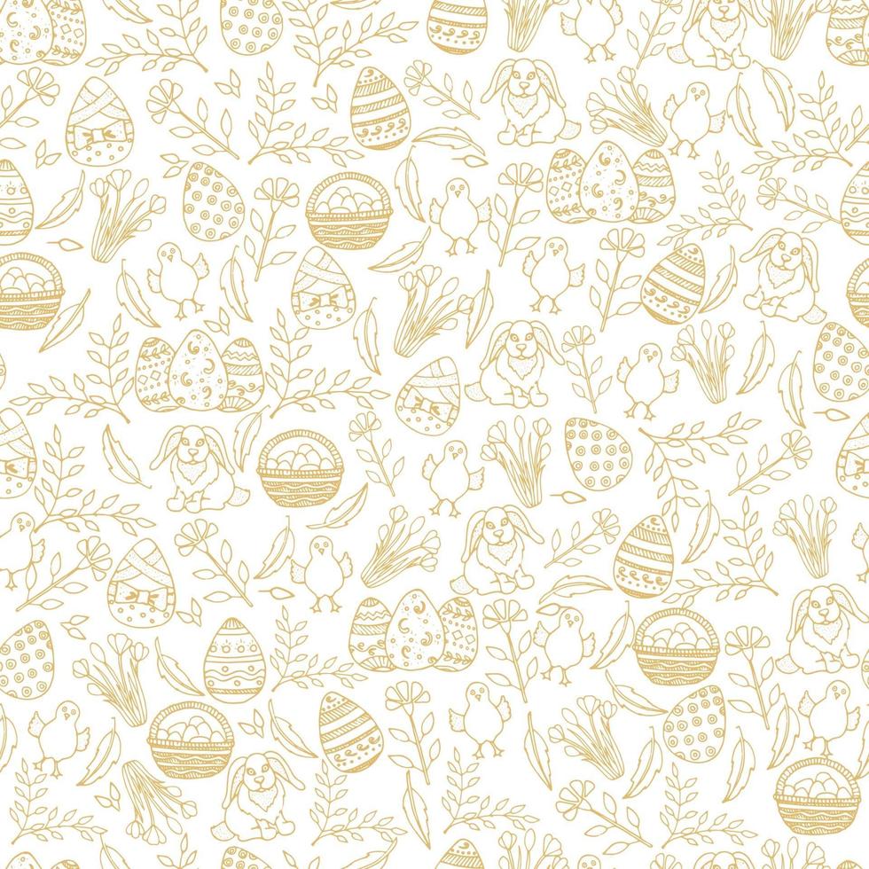 Easter seamless pattern with golden paschal symbols in sketch style. Layout for holidays. Seamless pattern can be used for pattern fills, wallpaper, web page background, surface textures. Pro Vector