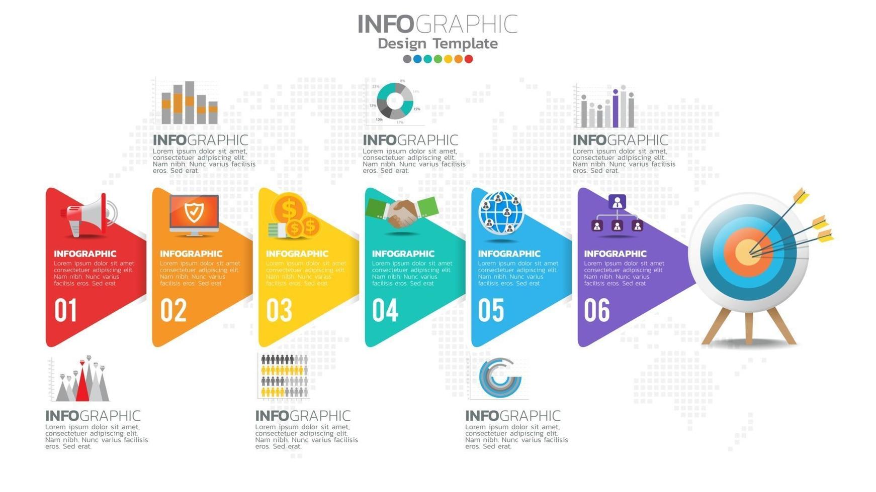 Infograph 6 steps circle element with number and chart diagram, business graph design. vector