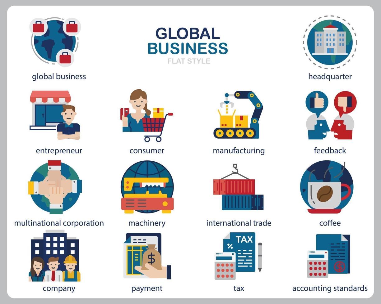 Global business icon set for website, document, poster design, printing, application. Global business concept icon outline style. Pro Vector