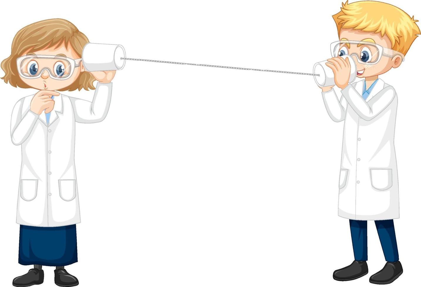 Two young scientist doing string phone experiment vector