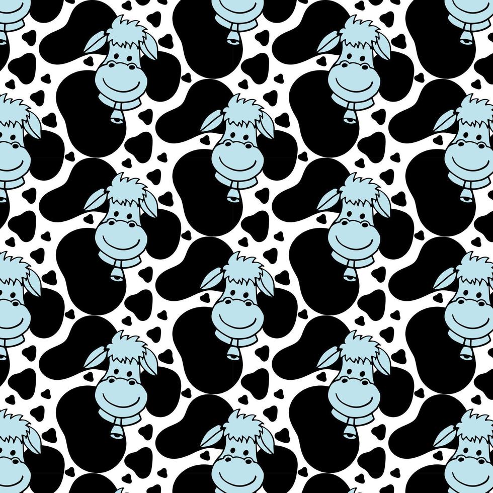 Vector smiling standing cow pattern on a spot background with. Seamless, sketch doodle or marker style with outline. For textile prints, wrapping paper, milk packages etc. Pro Vector