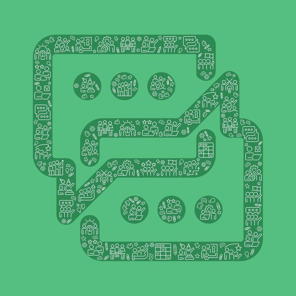 Team communication pixel perfect shaped concept filled with editable linear icons. Messaging and conversation. Simple thin line symbols composition on green background. Vector outline drawing Pro Vector