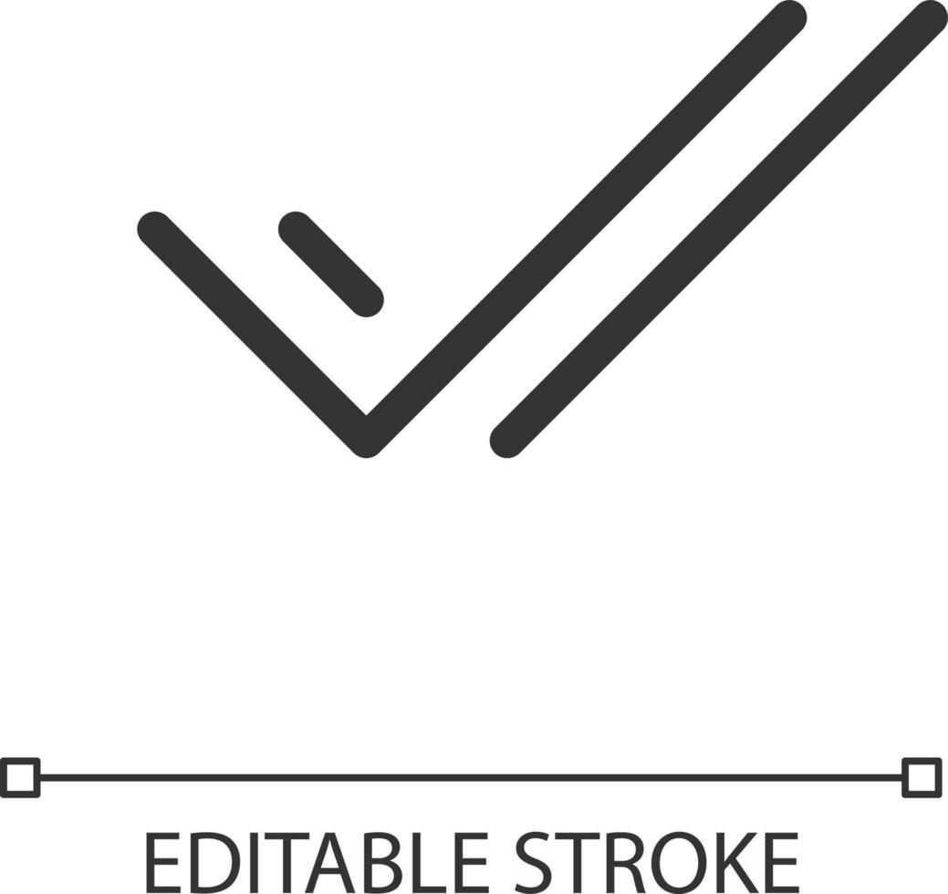 Two checkmarks pixel perfect linear ui icon. Messenger indicator. Social media. Online chat. GUI, UX design. Outline isolated user interface element for app and web. Editable stroke Pro Vector