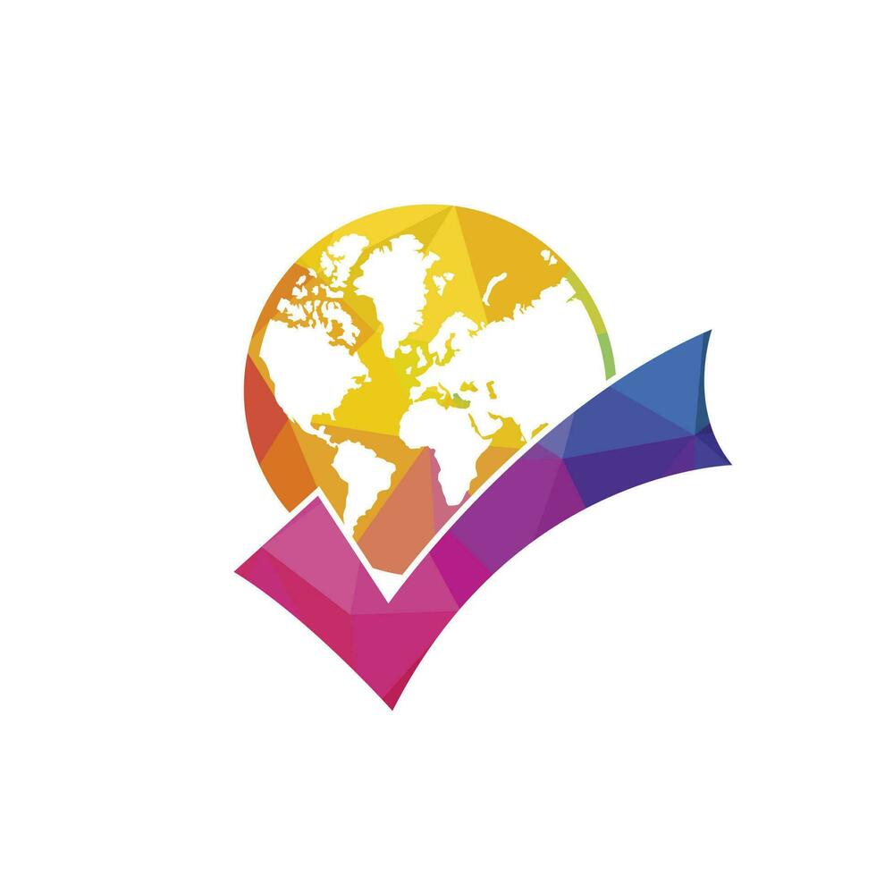 Globe check vector symbol design. Tick mark and globe icon design. Pro Vector