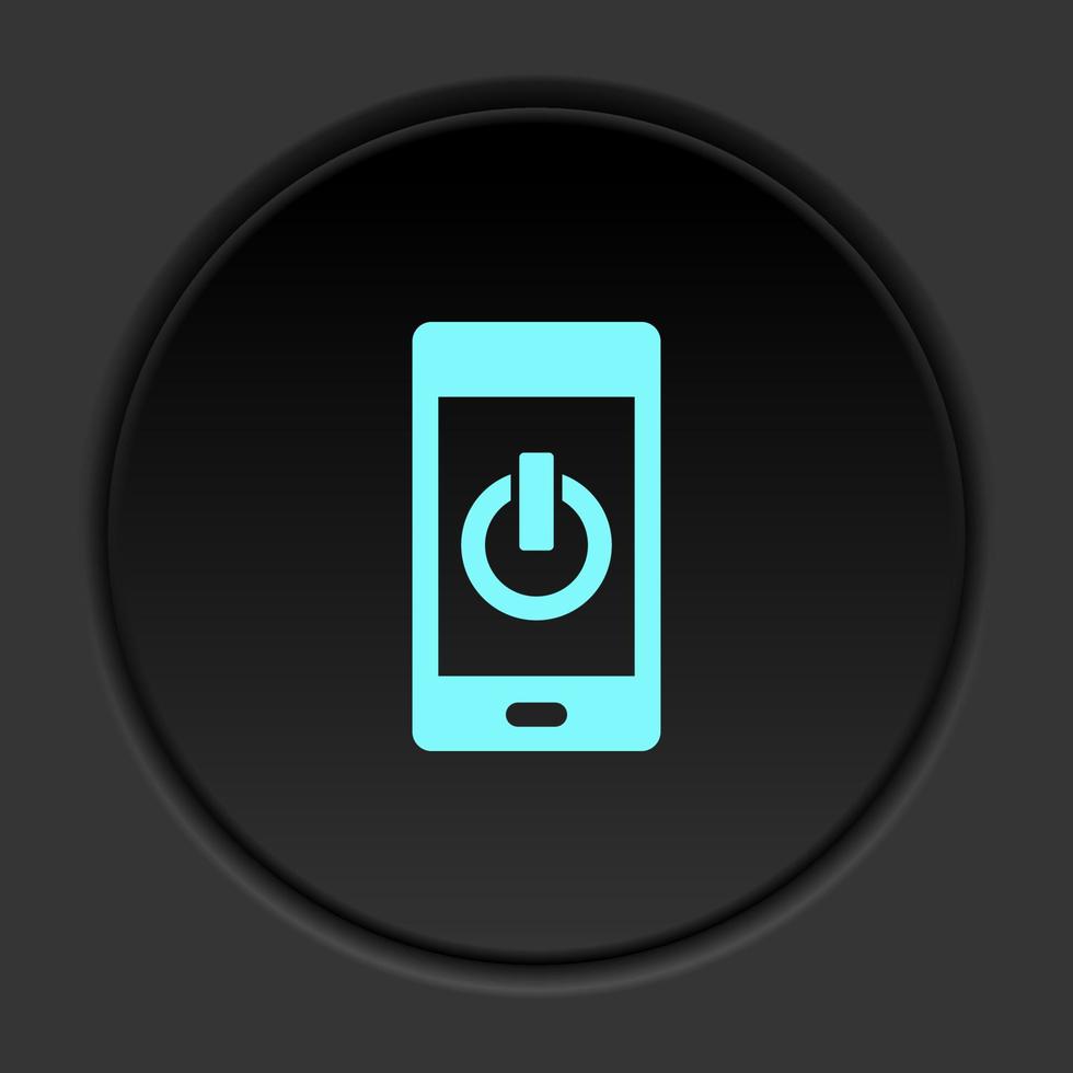 Dark button icon phone power. Button banner round badge interface for application illustration on darken background Pro Vector and Pro SVG
