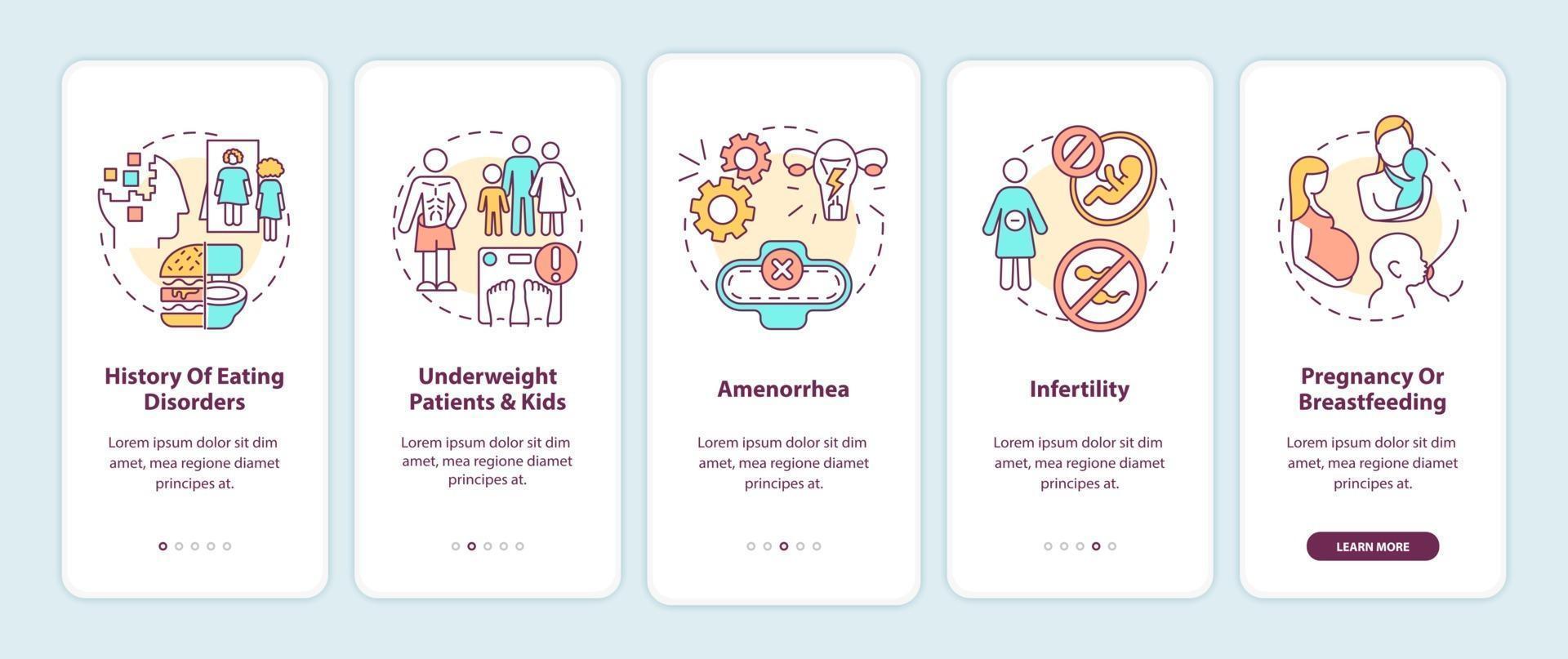 Intermittent fasting precaution onboarding mobile app page screen with concepts Pro Vector