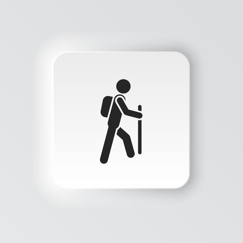 Rectangle button icon Mountain man travel. Button banner Rectangle badge interface for application illustration on neomorphic style on white background Pro Vector