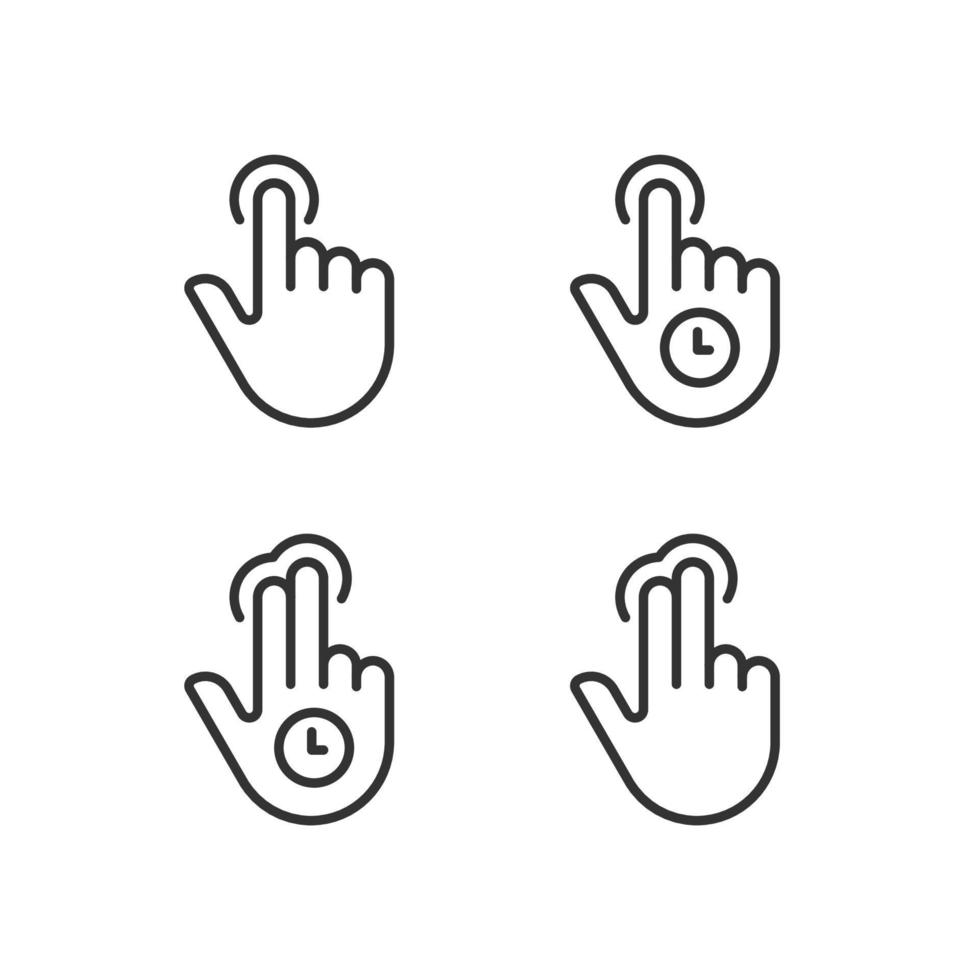 Long tap pixel perfect linear icons set. Double finger touch. Multi touch technology. Touchscreen control. Customizable thin line symbols. Isolated vector outline illustrations. Editable stroke Pro Vector